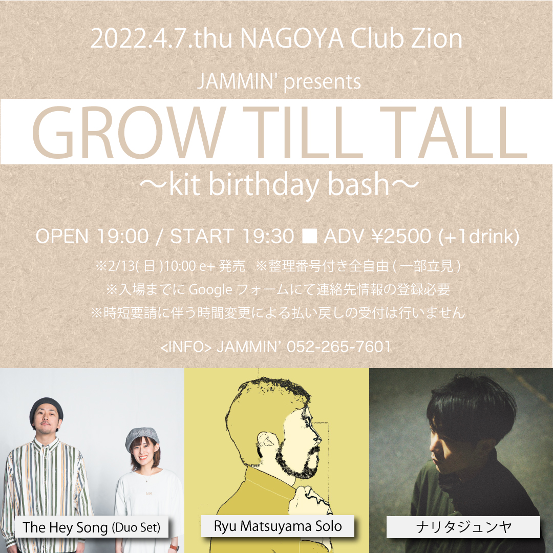 JAMMIN’ presents 「GROW TILL TALL〜kit birthday bash〜」