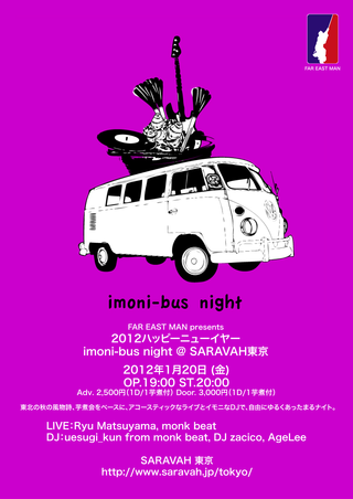 前売り券 2500円(1D/1芋煮付) 当日券 3000円(1D/1芋煮付)