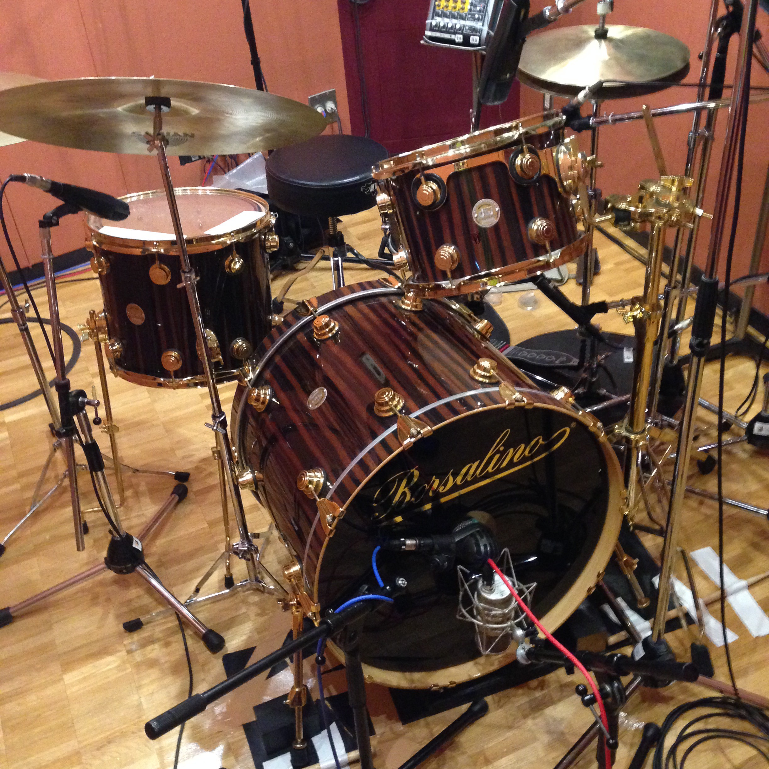 シアトルでドラムセットを注文した際、特別にタムスタンドもゴールドにしていただきました。