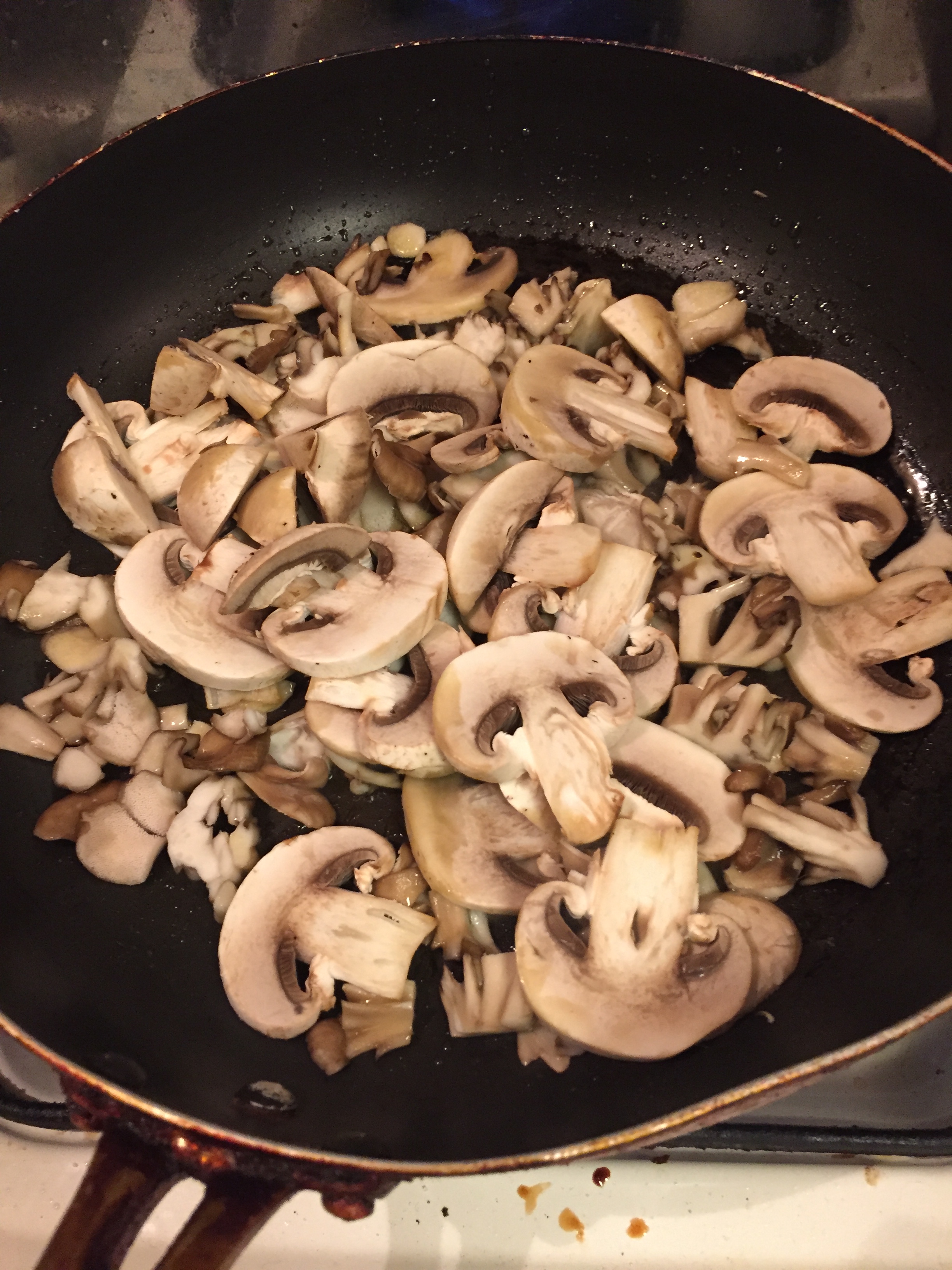 4.オリーブオイルをひいたフライパンにキノコを投入し、