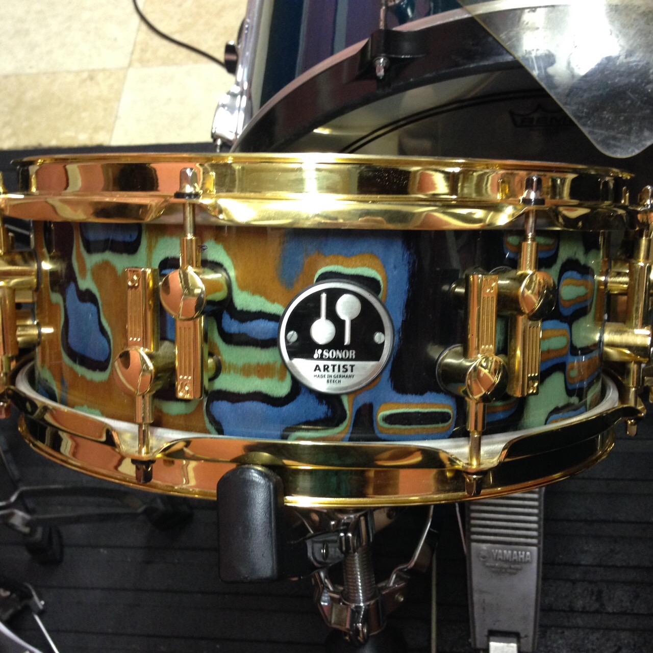そしてつい先日手に入れた、Jojo Mayer監修のスネアドラム、ドイツの老舗ドラムメーカーSonor社のアーティストシリーズ、”EARTH”。図太くてレスポンスの良いサウンドはもちろんのこと、EARTHと名付けられた奇抜な外見と、ビーチという堅い木材を使って仕上げられた分厚いシェル(胴体の部分)そしてチューニング/メンテナンスしやすいようデザインされたパーツなど、本当に魅力的なスネアです。