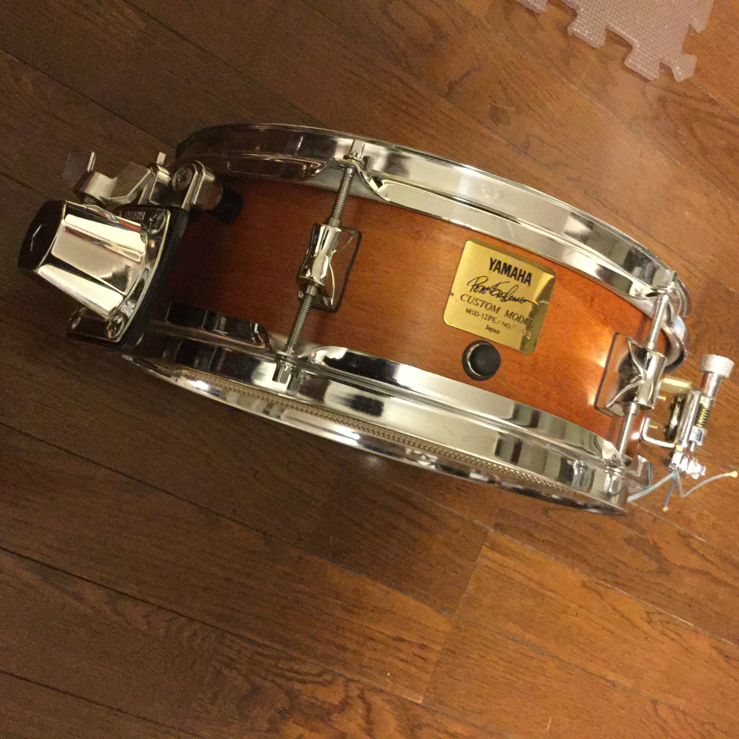 そんな彼のシグネイチャーモデルの中で、一際ユニークなものが、ヤマハから出ていた、ピーターアースキンのシグネイチャースネア。サイズは2種類あり、10インチのものと、12インチ。メイプルという高級な木材が使われていて、ゴールドパーツが装備されています。そして、何より特徴的なのは、ドラム自体に、ホルダーがついていて、これに合うパーツをつけることで、スネアスタンドだけでなく、ドラムセットの様々な場所にセットできるという点です。一般的なサイズのスネアは14インチですが、彼の小ぶりなスネアは、それに劣らず太くて、しっかりとした音色です。