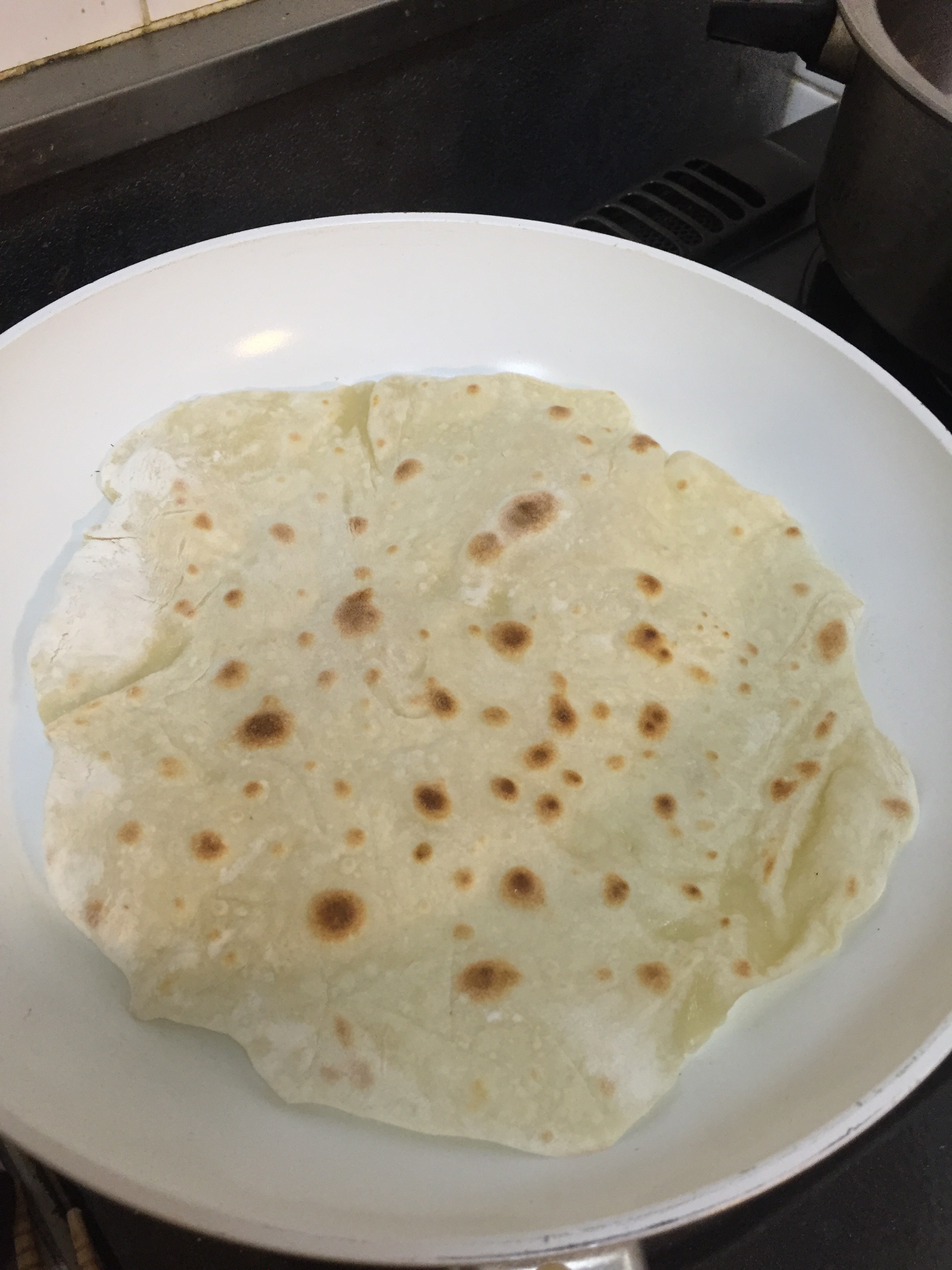 11.半分に折りたたみ、再度フライパンを中火に熱して、蓋をして焼く。