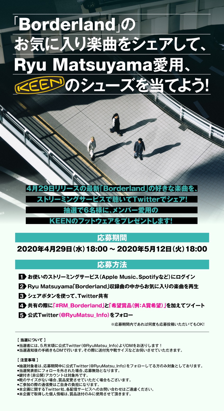 「Borderland」のお気に入り楽曲をシェアして、Ryu Matsuyama愛用の “KEEN” のシューズを当てよう!