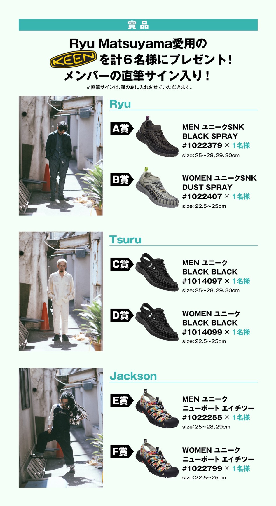 抽選で6名様に、メンバー愛用の“KEEN”のフットウェアをプレゼントます!